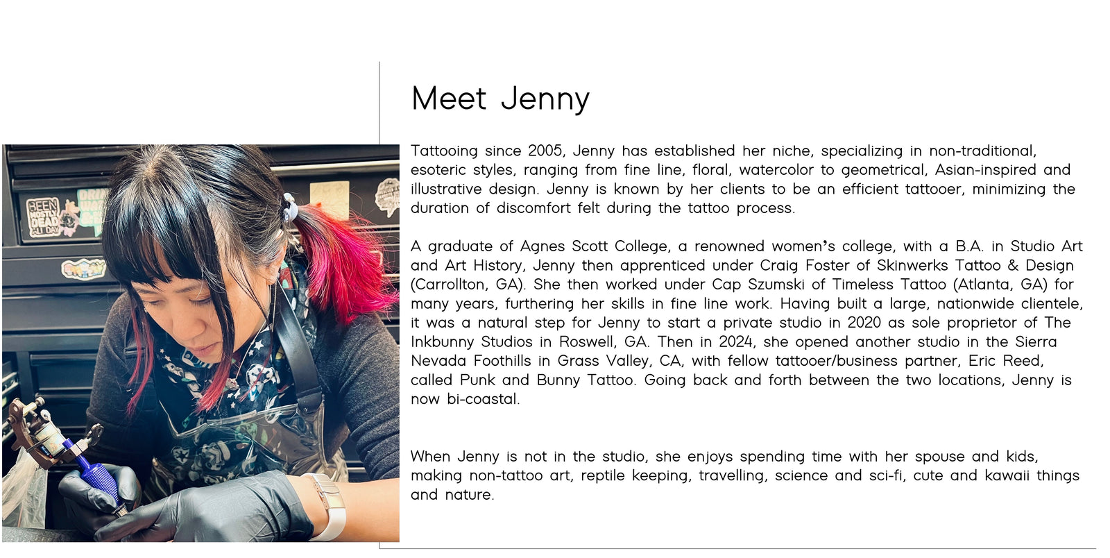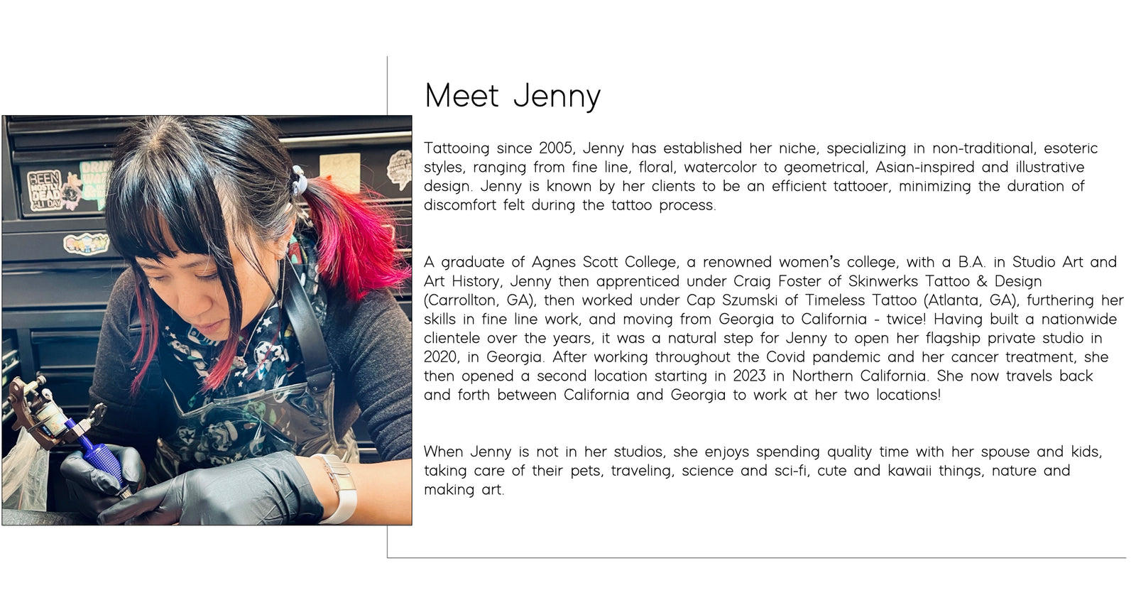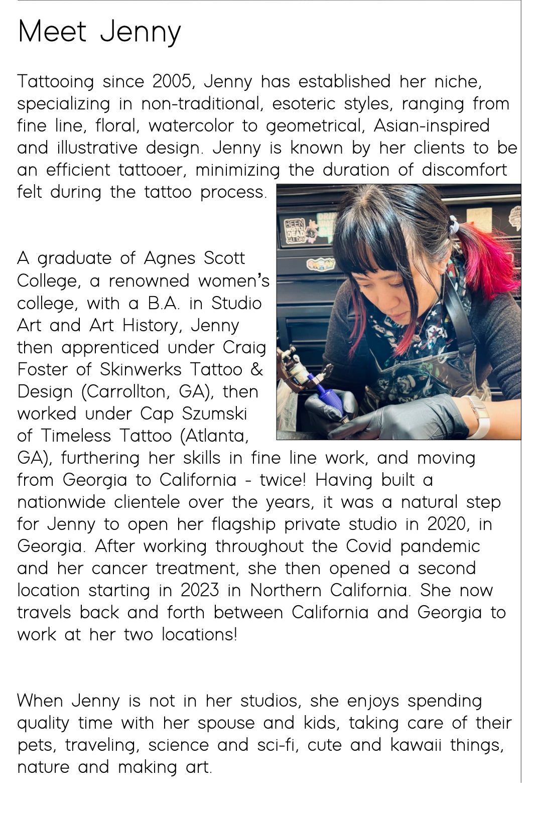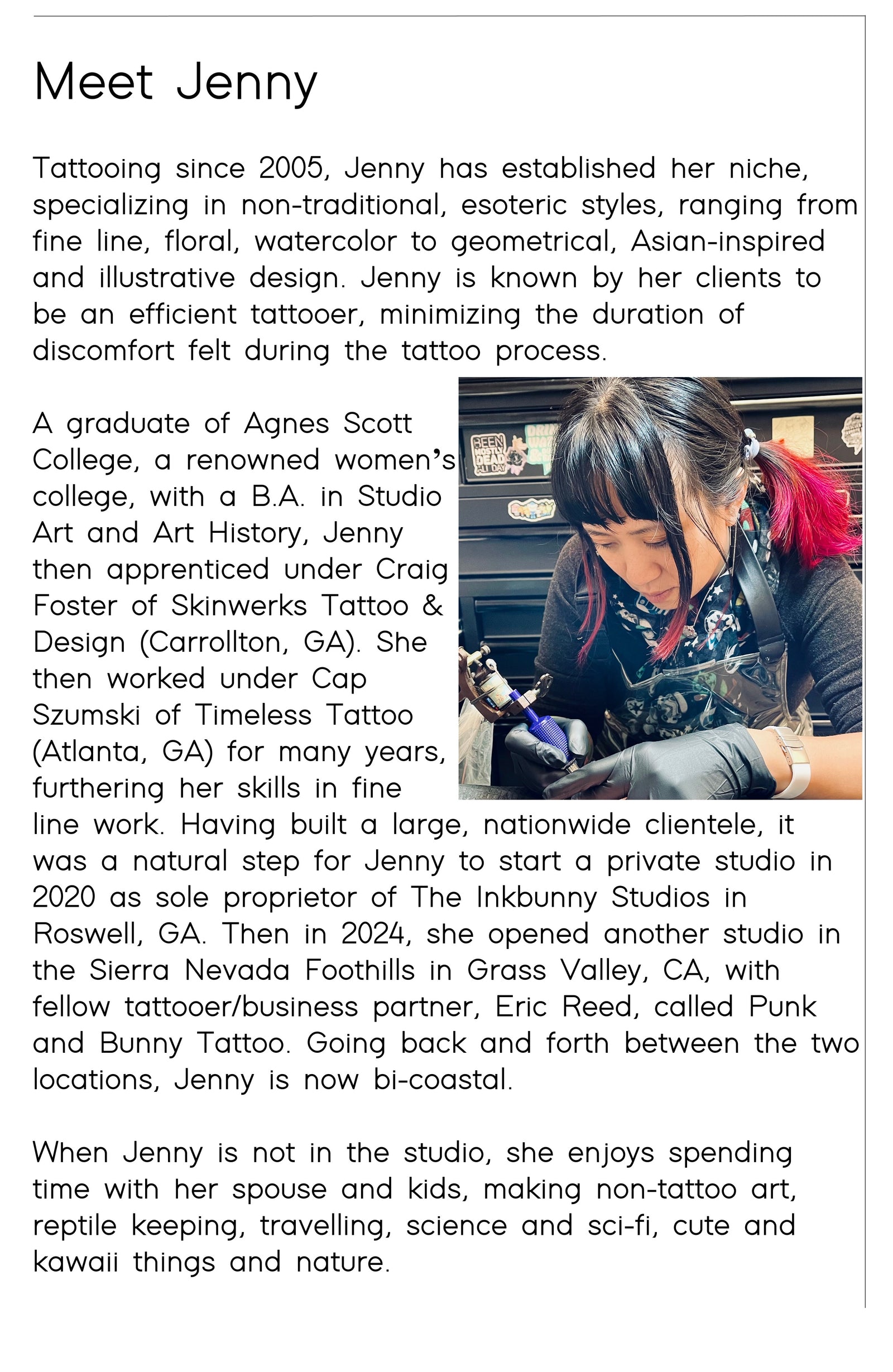 As a minority, woman owned small business, we are a safe space for all, and provide a high end experience for quality permanent artwork.